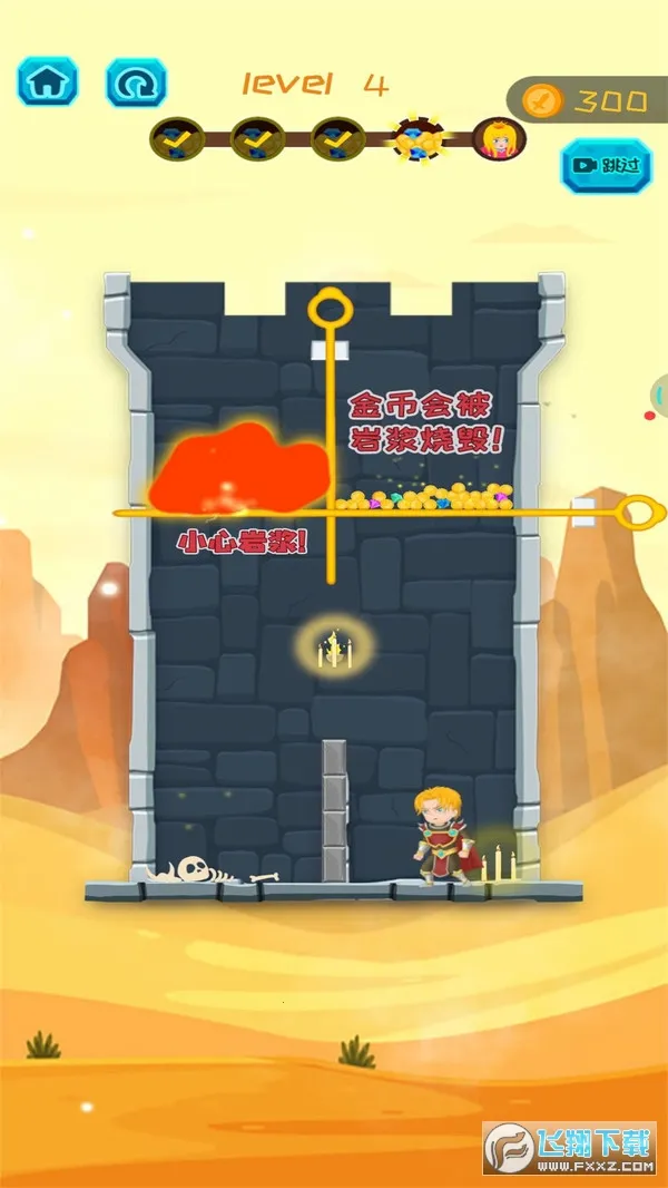 英雄密室脱险手机版是卡通风格解谜冒险游戏,玩家化身勇士或王子救公主。拉动针杆调整位置,克服难关,收集宝藏赢奖励。有密室逃脱、地牢探险玩法,关卡多样,操作简单,适合喜欢脑筋急转弯的玩家。