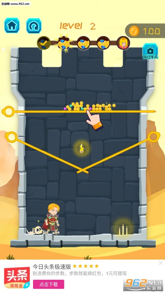 2、关卡丰富:每个关卡都藏有谜题与陷阱,玩法多样,前期黄金夺宝简单,后期救公主关卡更具挑战。