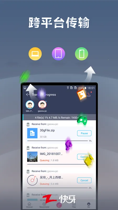4. 涵盖全类型文件传输,支持群组共享和本地二维码分享,还能智能清理优化,释放存储空间提升设备性能。