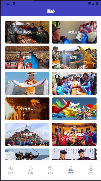 如果你想更改蒙语翻译官的语言为内蒙古语言,这款软件能很好地满足你的需求。它是专业的蒙古语翻译软件,功能超强大。有文字翻译,依托内蒙古本地语言库,提供正宗蒙汉翻译;高级翻译支持中文语音和图片识别翻译成蒙古文,快速实现中蒙互译。还能进行翻译收藏,方便复习生词难词。精选常用口语单词,助你快速掌握基础蒙古语。软件特色也很棒,有专业人员提供一对一人工翻译,保证质量与保密性。支持收藏重要内容辅助学习。每日一言收录丰富蒙古谚语,双语展示还能自定义背景图保存。使用体验更是便捷,滑词翻译在多种场景下复制文本就能速得结果,拍照翻译通过摄像头查词,无需手动输入。界面极简风格,体验流畅,能轻松帮你解决蒙语翻译及语言切换等需求。