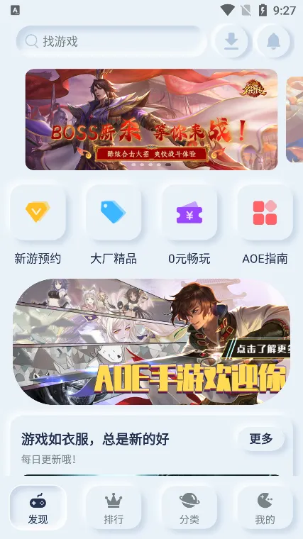 aoe手游盒子平台汇集丰富正版游戏资源,提供充值优惠。有搜索分类功能,新游资讯及时更新。还能一键比价享全网最低折扣,有多重福利,千万用户选择,助你告别游戏荒,解决游戏疑难。