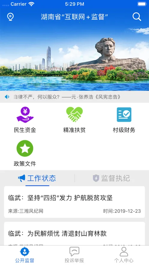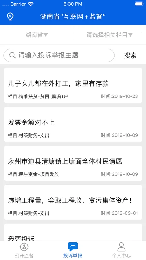 2. 设置民生工程、精准扶贫、村级金融投诉举报等模块,聚焦民生热点,方便群众参与监督。