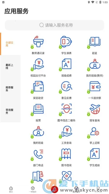 1. 爱城建整合了校园内各类平台内容,如门户网站、管理系统、教研 OA 办公等,实现服务一网搜索,全校范围内快速查找服务事项,为师生提供统一查询服务。