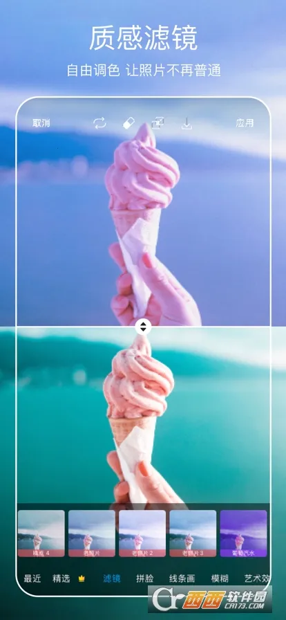 2、软件具备缩放、旋转、翻转、倾斜、应用和扭曲等能力,可改变摄影作品。