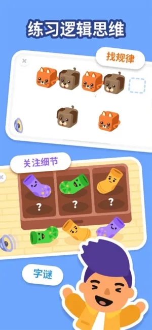 3. 亮点众多,可爱趣味的提示和技巧图形吸引孩子,海量逻辑谜题多样挑战思维,学习成果可共享打印证书增加成就感,配有画外音和背景音乐增添趣味性。