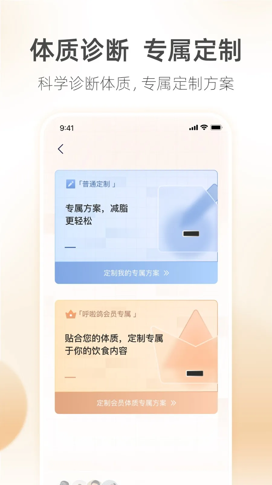 呼啦鸽app是具社交属性的身材管理软件,提供体重打卡、运动检测、AR鉴食等一站式方案。有专业营养师定制饮食计划,含多种特色功能与服务,助用户科学管理身材,养成健康习惯 。