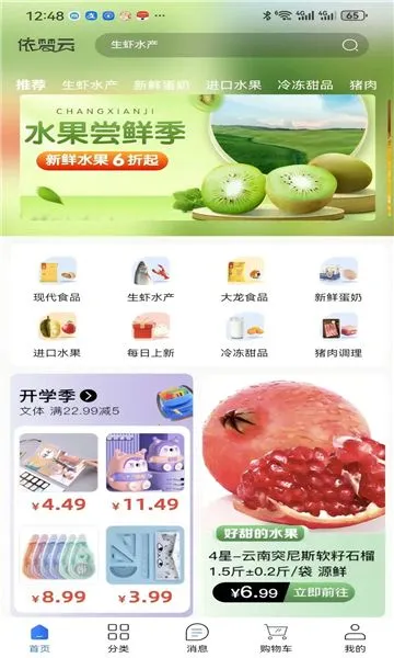 依梦云是一款自由生活购物类app,能购买各类货物,涵盖现代食物、水产蛋奶等。商家24小时在线处理订单,商品范围广,有积分换礼、水果尝鲜季等特色,信息正版,售后完善,优惠券有限时。