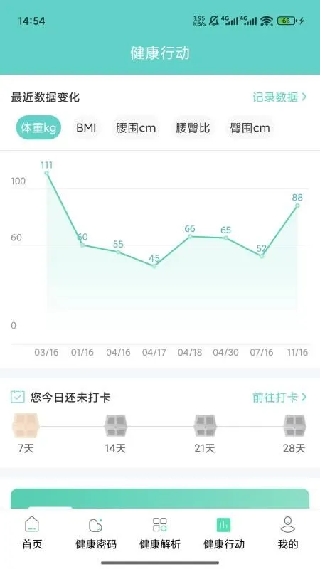 3. 提供详细的个人健康数据信息,涵盖体重BMI腰围腰臀比等,方便用户高效分析,还设有积分商城服务,积分可在线兑换好物。