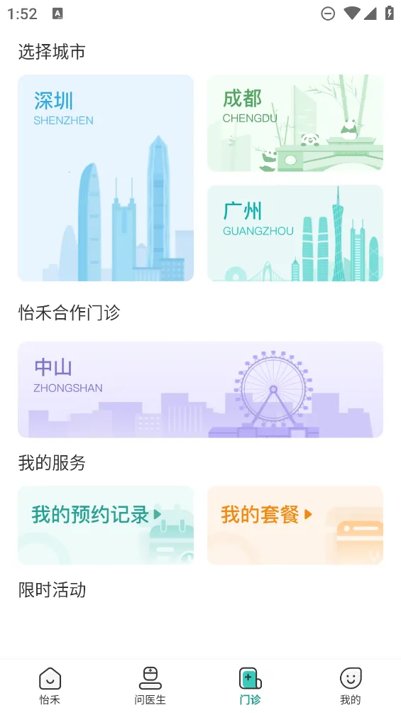 4. 门诊多地开设,怡禾门诊开到深圳、广州、成都等地,在中山、香港有合作门诊,提供多科室诊疗服务。