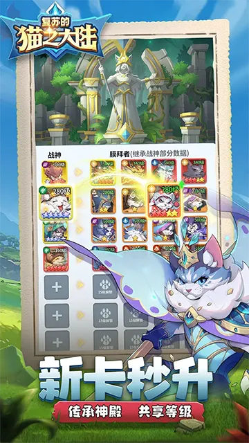 1 招募强大猫灵英雄,使其多维度成长,包括升星、觉醒和强化装备。