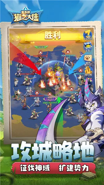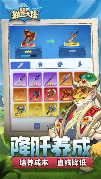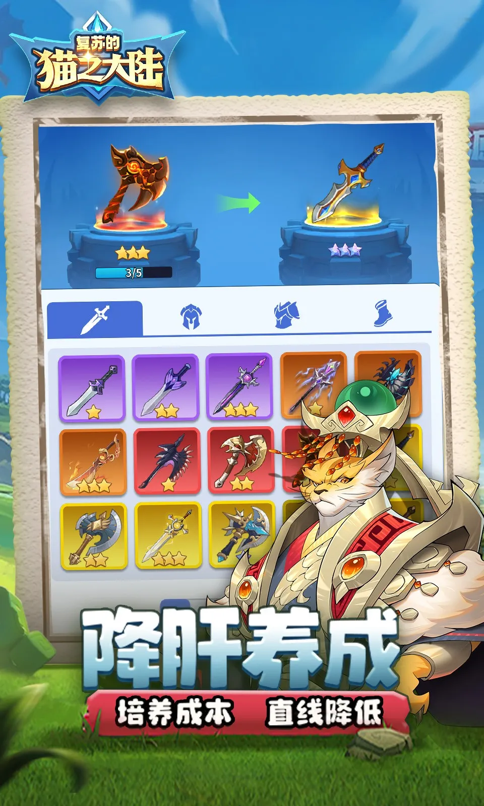 1. 招募强大猫灵英雄,使其多维度成长,包括升星、觉醒和强化装备。