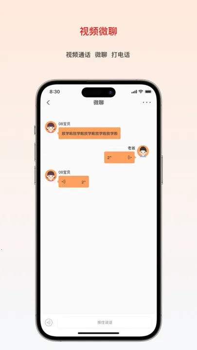 3. 便捷交互,首次使用几步操作即可快速绑定,首页集中呈现关键信息,支持高清语音和双向视频通话,拉近亲子距离。