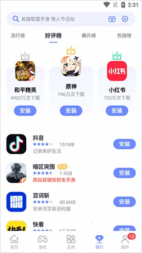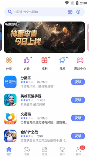 2、之后就是首页,这里是一些热门的游戏或应用。