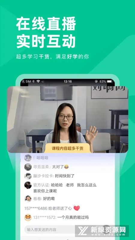 4. 有实时在线直播课程,方便用户观看并互动学习,且不定期限时免费,还有丰富干货资源。
