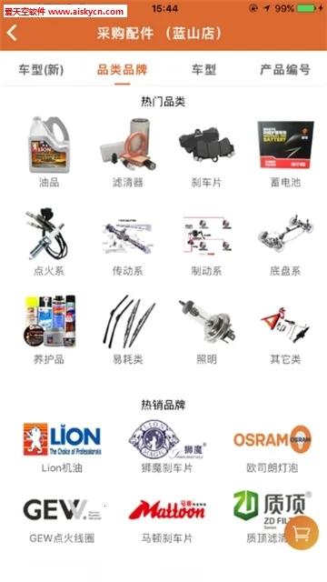 3. 采购版块有详细车型和品牌分类信息,便于选择所需配件快速采购。