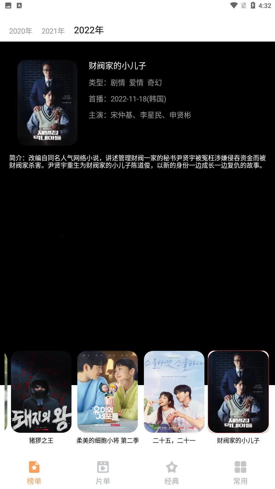 4. 提供丰富的韩剧内容分类和选集,更新及时,操作简单,用户体验度高。