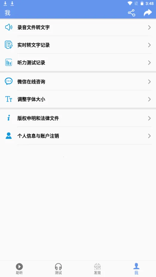 智听助听器软件专为听障人群设计,用智能手机搭配普通耳机实现专业助听。能智能降噪、增强声音,适配多种耳机,支持听力测试、语音转文字、录音等功能,为听障人士提供全面听力辅助。