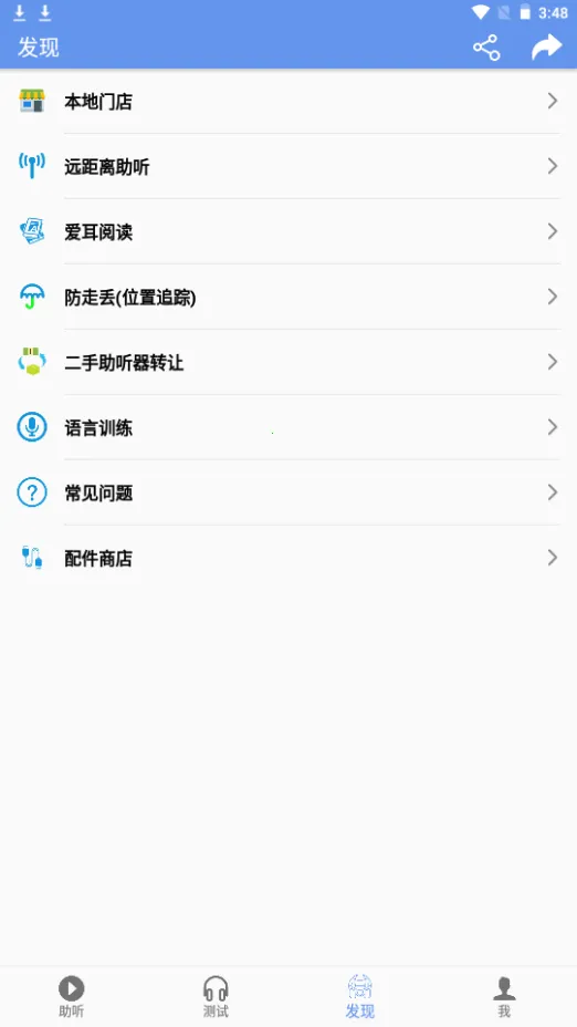 1. 快速听力测试,全面覆盖频点,10分钟自助完成,能让用户随时了解自身听力状况。
