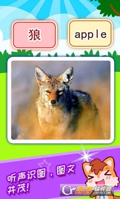 4. 软件涵盖一些常见的动物食物水果交通工具风景等多种图片,每一张图片下面都有中英文和配音,都是由真人进行配音,采用看图的方式让宝宝们认识这个世界。