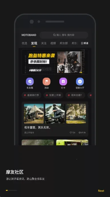 2. 社交多元:知识分享社区和多维社交结合,达人与机车博主云集,有同城约跑、问答投票、二手车及闲置交易等专区,方便交流互动。