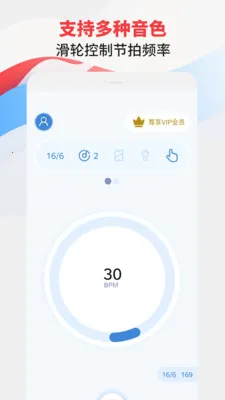 节拍器专家是一款手机节拍器软件,界面简约,通过滑轮式控制轻松调节拍频率。支持多种节奏、速率定制,有多种音色,还能开启闪光灯或震动模式,操作便捷,适用于音乐学习、表演等,节奏稳定可靠。