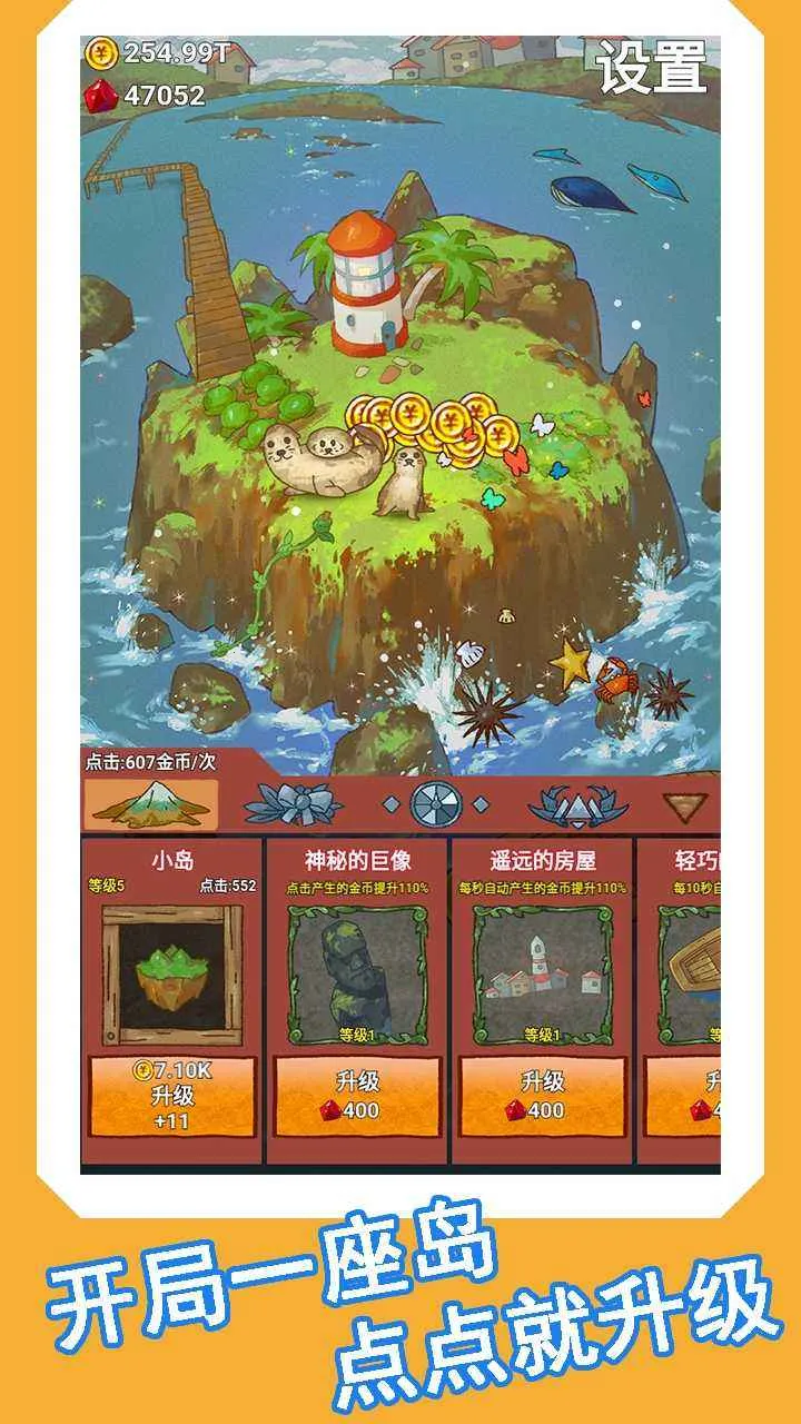1. 游戏玩法轻松,以挂机和点击为主,玩家能轻松打造自己的海岛,从简陋到富饶,见证小岛的发展。