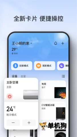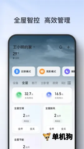 4. 预设多种智能场景,如离家回家观影睡眠模式等,还可自定义场景,根据个性化需求设置触发条件,打造专属自动化场景。