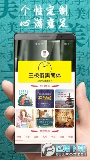 字体美化大师回归版是手机美化工具,汇集上千款精品字体,云字库下载快占用低,全机型适配。有超丰富字体库,分类贴心,支持主流App单独换字,操作简单,一键换字体,轻松赋予手机个性。