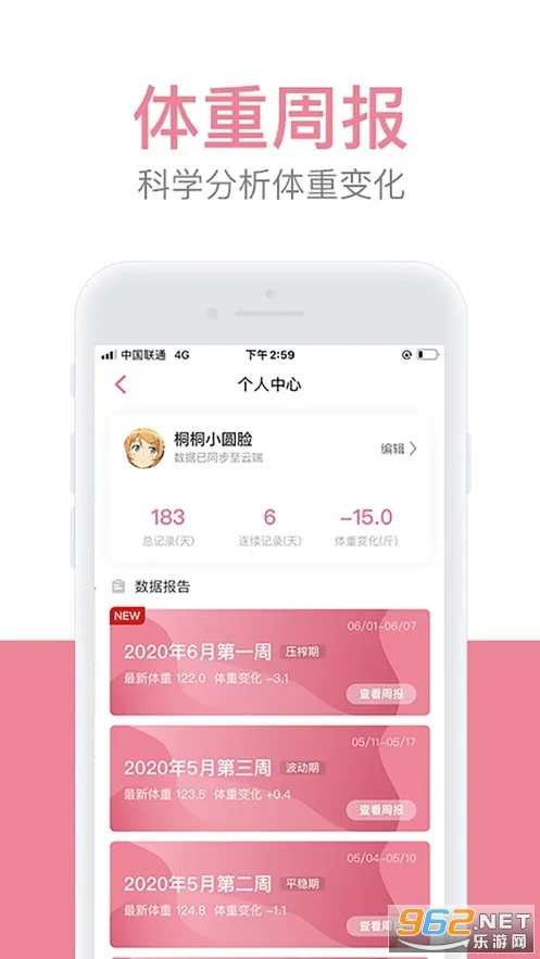 2. 支持历史数据云端同步,永久保存,体重和目标的对比更直观,还可和众多社区用户交流减重数据与经验。