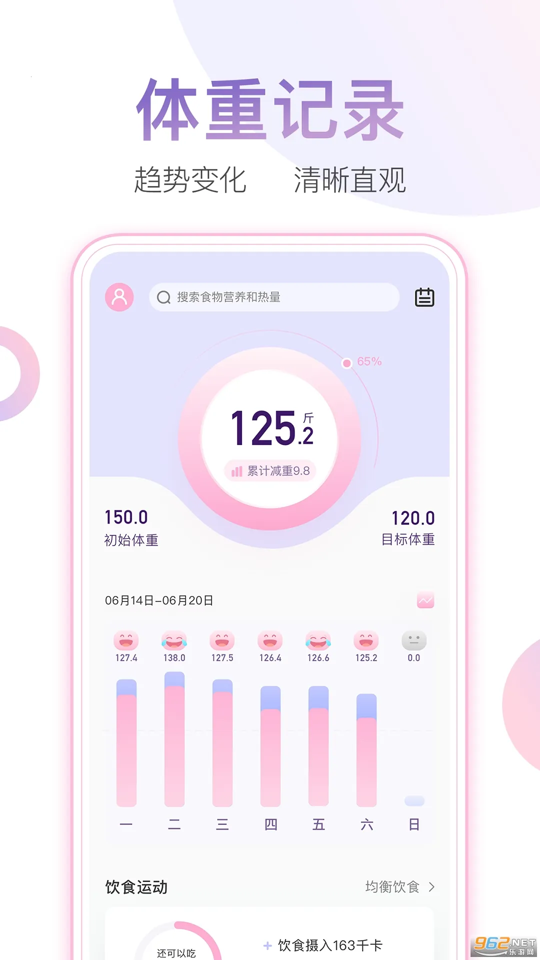 3. 可随时随地记录体重数据,以曲线图形式呈现近期体重变化,帮助清晰掌握体重波动,有效管控体重。