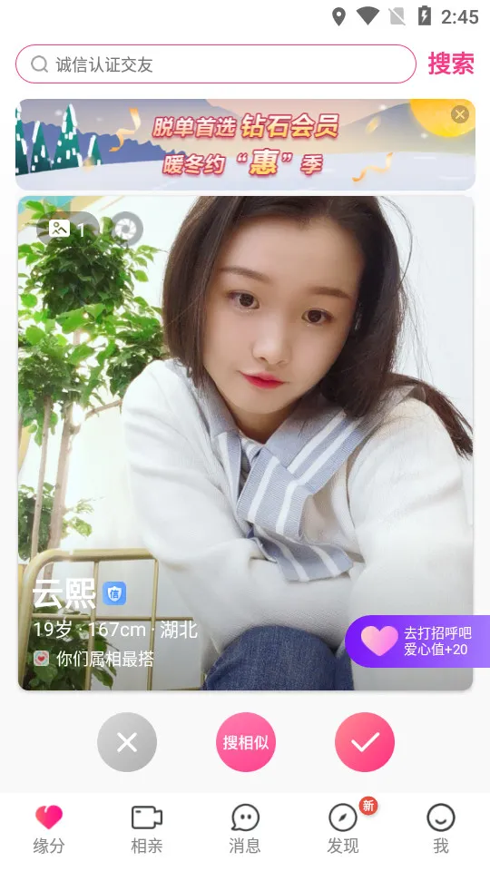 3. 邂逅缘分推荐优质单身异性,助你快速遇见心动的TA。