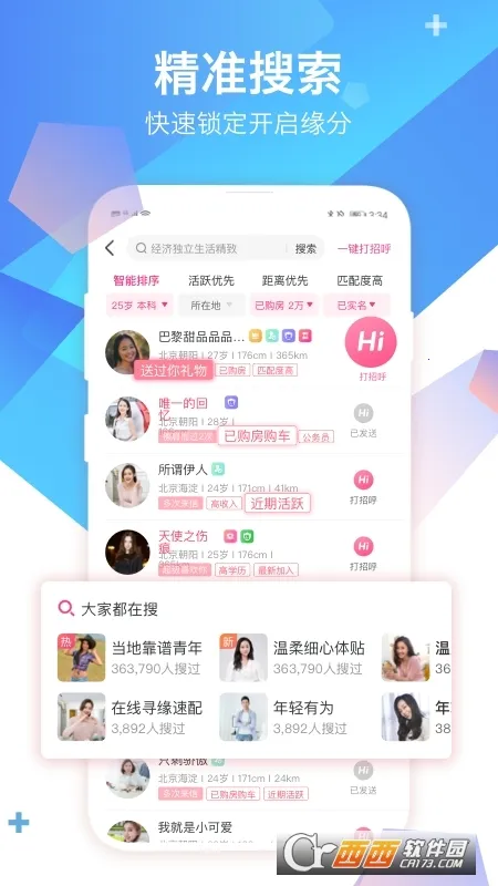2. 提供精准交友搜索选项,能挑选90后萝莉等心仪对象。