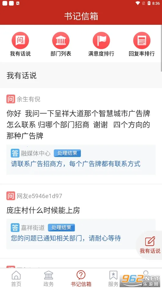 3. 问政便捷:提供问政专栏,用户能在线参与问政,直连政府部门,咨询过程透明,回复率高。