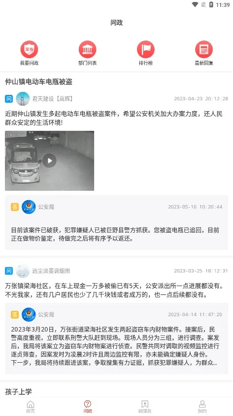 4. 提供问政专栏,用户能在线参与问政,直连政府部门。