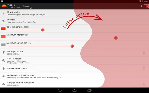 “twilight”读音是 /twa?la?t/ 。有一款叫Twilight的软件能满足你对屏幕亮度调节的需求。它有自动和手动两种模式。自动模式下,能根据时间自动调整屏幕亮度,还能依据地理位置自动识别日出日落时间来相应调节。手动模式可让用户自定义色温亮度和滤镜强度。这软件能帮你过滤有害蓝光,玩手机不易眼疲劳,降低屏幕亮度和蓝光还能护眼并减少电量消耗、延长设备续航。操作简单,适合夜间阅读或玩游戏的朋友。安装后点击图标进入,点击上方加号就能自定义配置。它兼容性强,能在安卓手机、平板等设备完美运行,运行流畅不卡顿。有了它,就能轻松打造适合自己的护眼模式啦,快去试试吧。