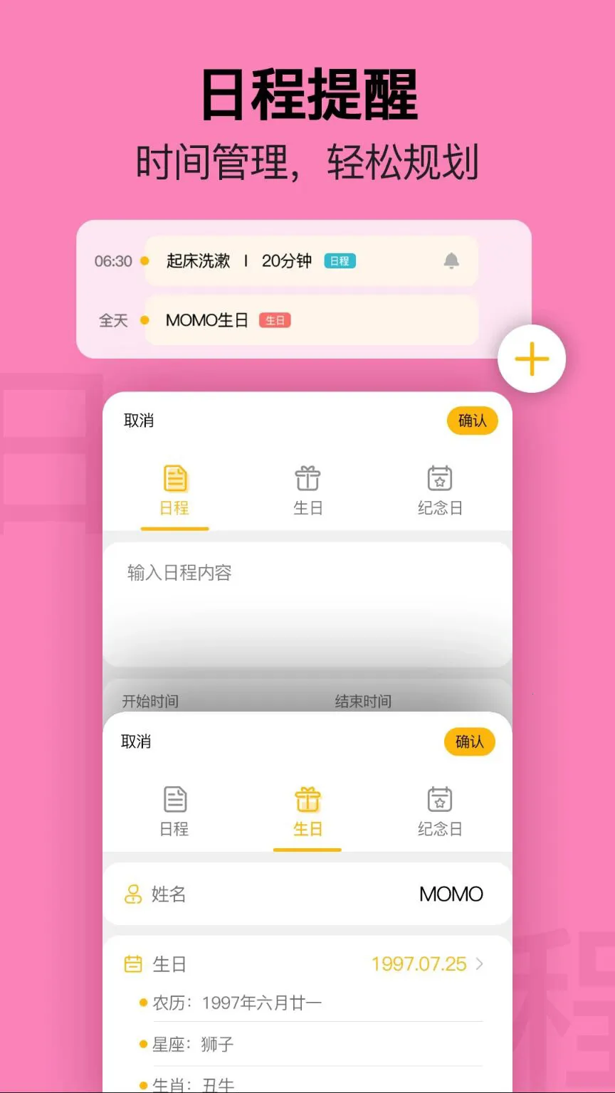 3. 具备贴心提醒功能,能确保重要日子和时间不会错过,还有记事本方便记录生活琐事与工作安排。