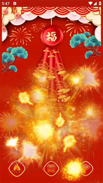 该版本互动与分享功能便捷,支持通过点击、滑动屏幕或摇晃手机等方式触发鞭炮,还能将燃放过程录制成视频分享至社交平台。