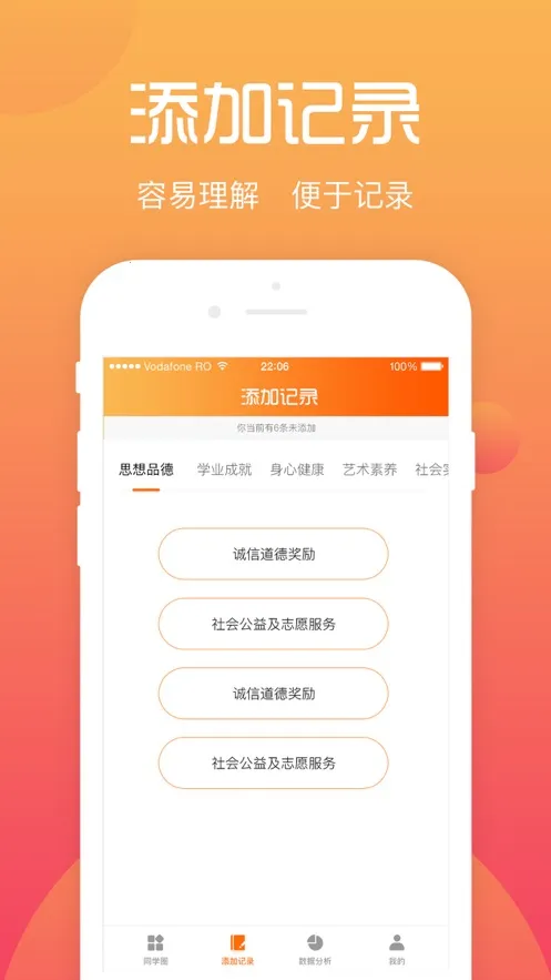 1. 可快速记录学生每日行为,配合手机拍照功能,极大简化操作,有效减轻学生负担。