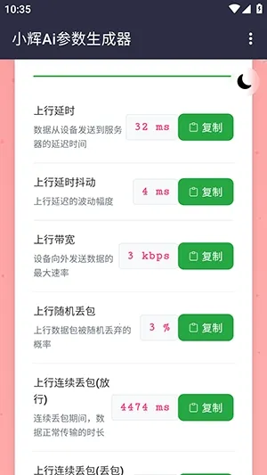 小辉Ai参数安卓版是网络性能测试与游戏体验调优工具,能精准复现真实网络环境,支持多场景弱网模拟,可自定义核心参数。无需Root,无广告会员限制,操作简单,还有智能诊断、参数优化等功能,助你了解优化网络。