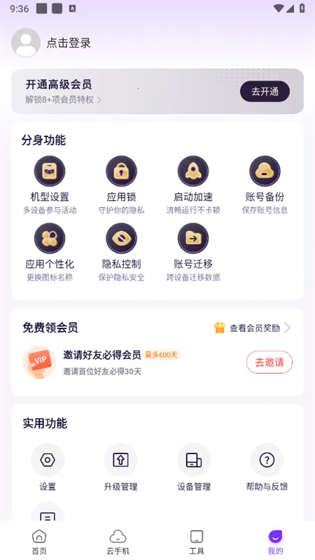 4 分身微信、支付宝可登录、可分享、可支付,多开淘宝闲鱼支付宝等几乎所有应用,带来意外惊喜。