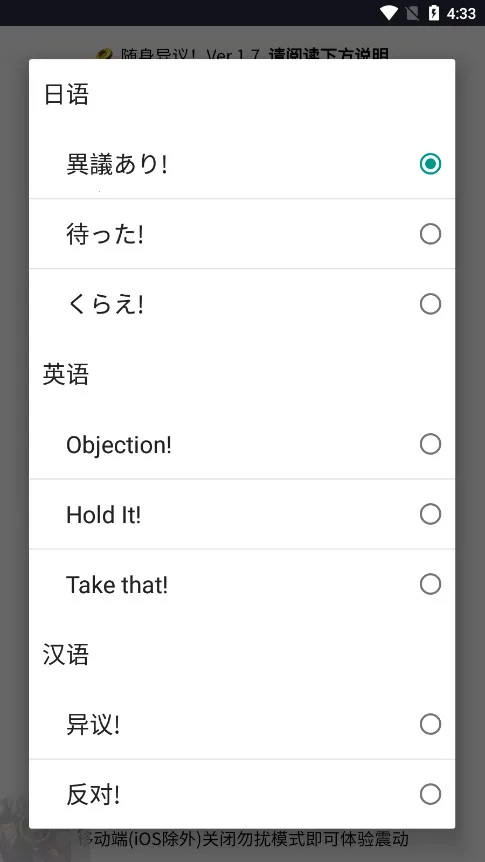你是否想要一种独特又有趣的方式来表达拒绝或增添生活乐趣?随身异议软件就能满足你!它融合语音识别和摄像头技术,搭配角色原声效,能还原经典名场面。支持多语言切换,不管你是中日英哪种语言背景都适用。