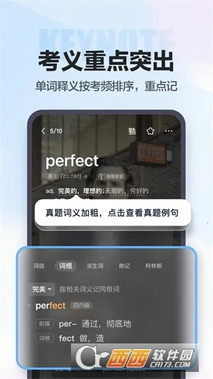 2. 它为学生提供各种速记卡,高效刷词能助学生掌握每个词的考义与细节。