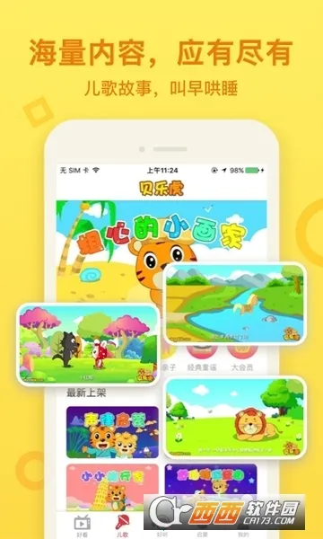 1. 海量内容丰富多样,有宝宝喜爱的儿歌、动画、音频、绘本,还有流行儿歌、原创儿歌、童话故事、原创恐龙汽车主题音乐剧、海量动画、童话寓言、神话历史、传统国学、唐诗宋词、三字经等。