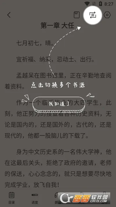 3. 软件可自定义阅读模式,随心调整字体、背景、亮度等,甚至能上传图片设置阅读背景,阅读体验超舒适。