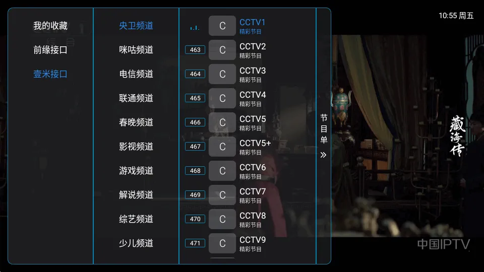 3. 换台方便,呼出菜单选择要看的频道点击切换即可,画面全高清。
