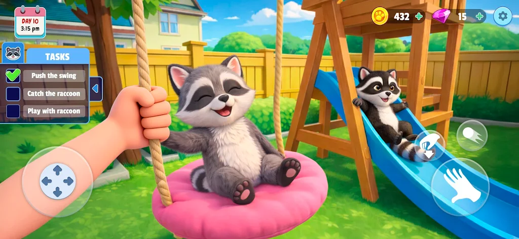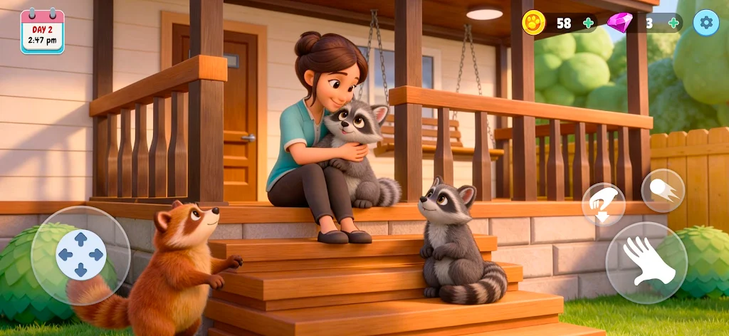 2. 可自由决定与浣熊的互动方式,喂它们零食、布置舒适的家,每个举动都能影响氛围,创造温馨回忆。