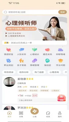成都心道颐年安卓版手机版提供多元服务,有倾听师承接各类倾诉,专业咨询师开展深度心理疏导,律师团队解答法律疑问,能全方位满足用户需求。
