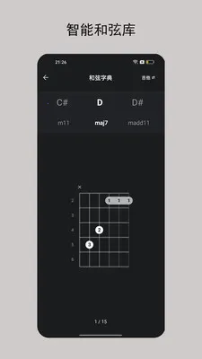 2、拥有专业乐理工具箱,智能和弦库涵盖数万种吉他尤克里里和弦,支持智能指法推演与真人级发声展示。