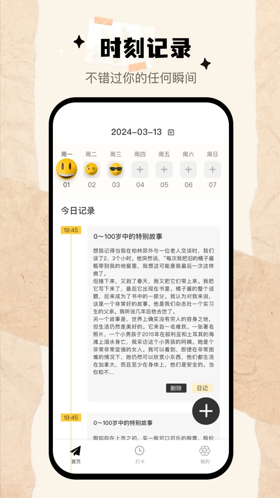 3、小小日记模块支持图文结合,兼具手账属性,记录过程自由且充满温度,能生动记录生活片段与心情点滴。