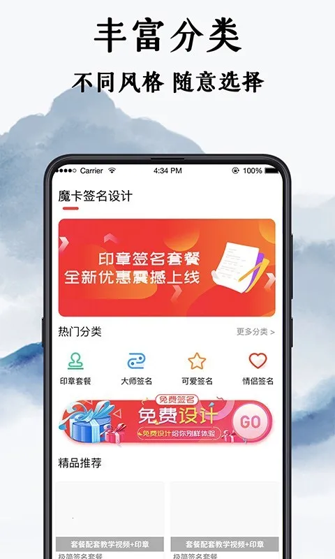 魔卡签名设计是一款艺术签名设计软件,风格多样、字体丰富,有大师真人在线手写定制。提供印章商城、字帖临摹,支持多场景。可自由选字体颜色等,能保存分享,还有客服随时提供帮助 。
